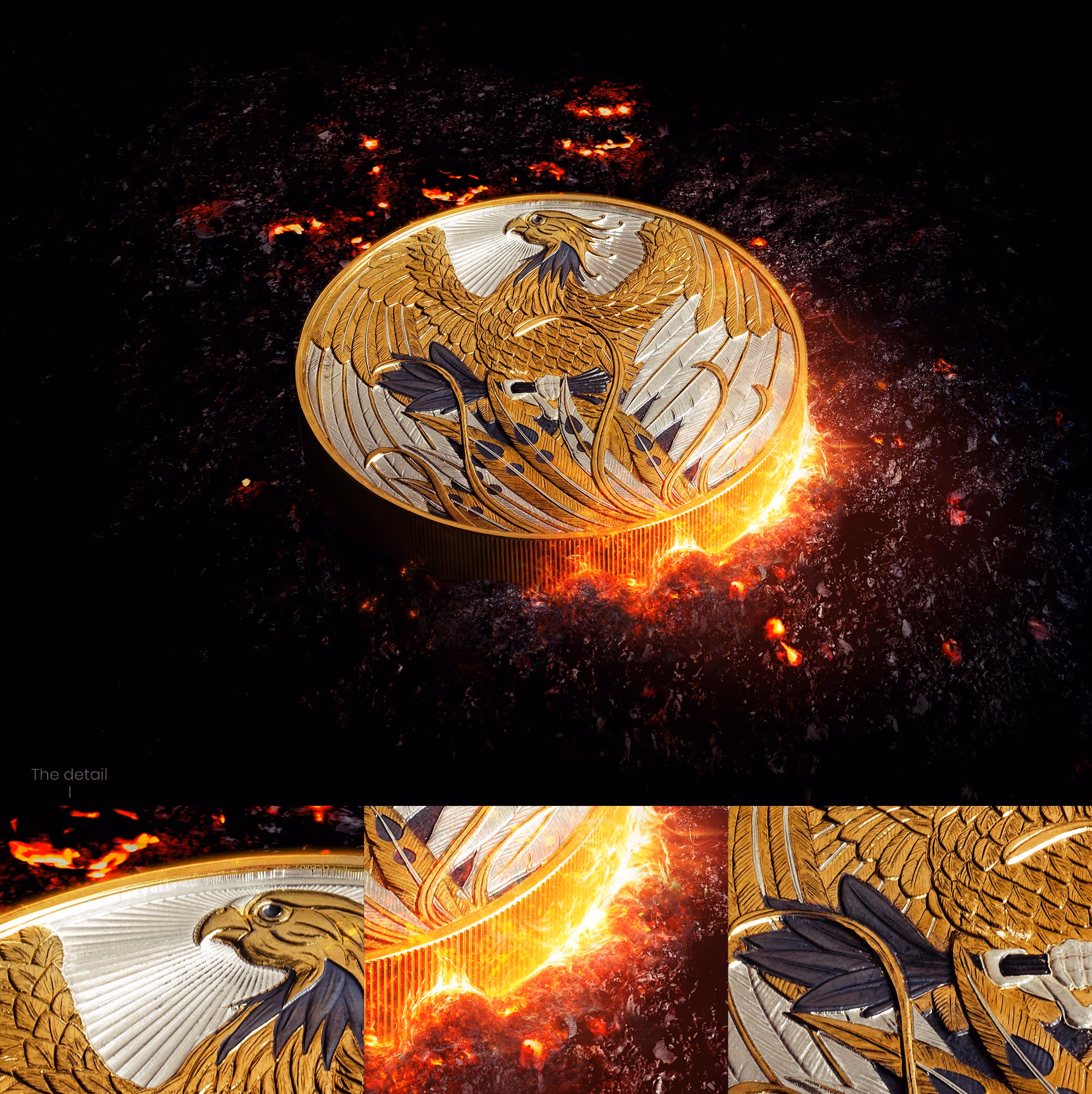 We were tasked by The Royal Mint to create key visuals for the first in a series of “Royal Mint Master Works”. The Phoenix Ascendant. A very prestigious project with a creative brief that allowed our imagination to run wild.